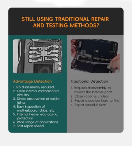 Para laboratorios de reparación de telefonía móvil y microelectrónica, TBK-2208 ofrece una inspección detallada de soldaduras BGA, ICs críticos y uniones ocultas, permitiendo identificar de forma inmediata voids, puentes, soldaduras frías, desalineaciones y defectos de fabricación. Este nivel de análisis incrementa la precisión del diagnóstico, reduce tiempos de intervención y mejora significativamente la tasa de éxito en reparaciones complejas.